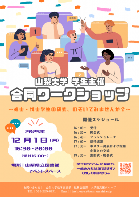 【山梨大学大学院】「令和7年度 学生主催合同ワークショップ」の開催について